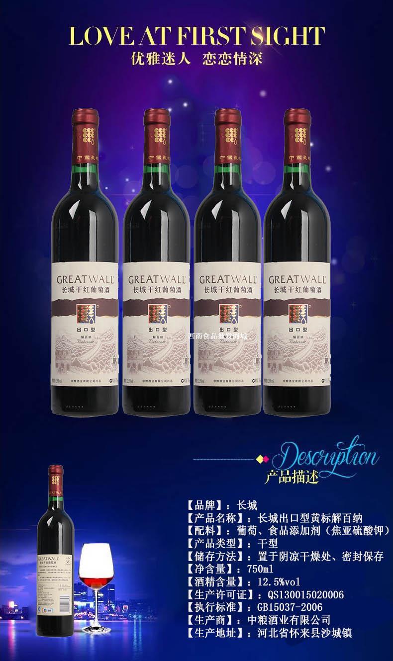 长城出口型黄标解百纳干红葡萄酒750ml