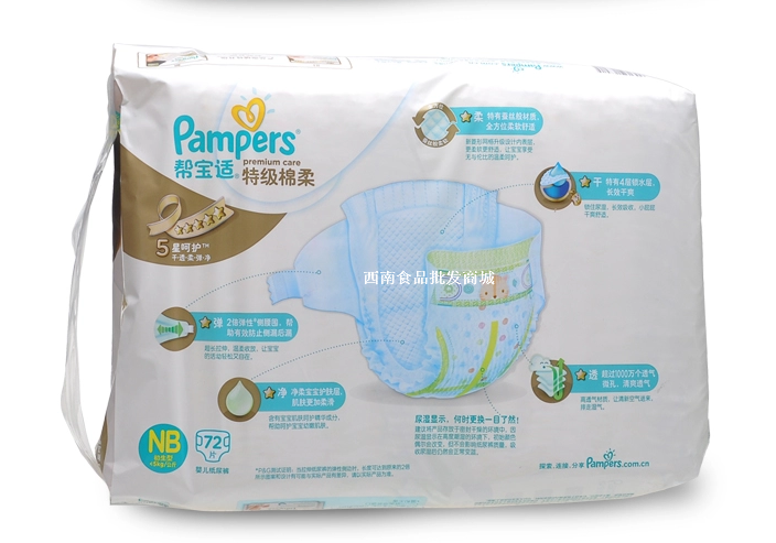 帮宝适特级棉柔婴儿纸尿裤 初生装NB (一件4包 一包72片 不开零)