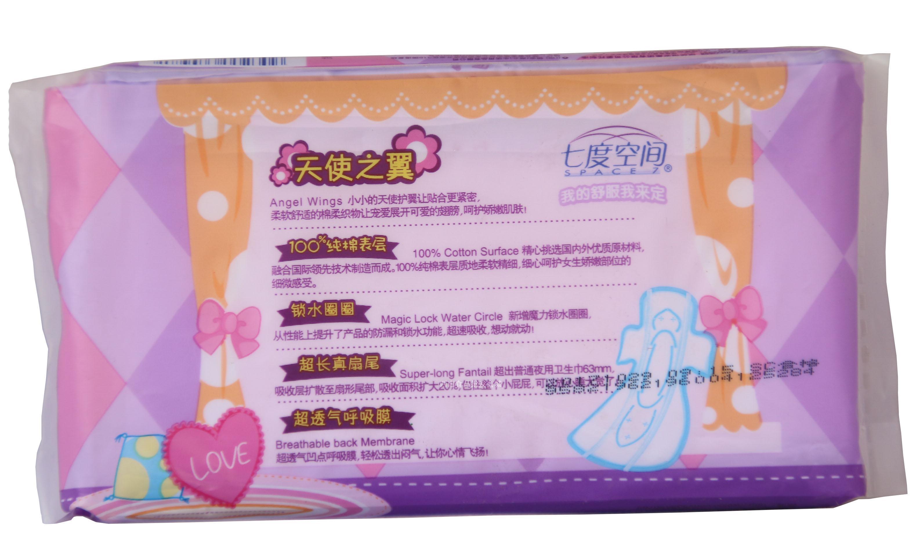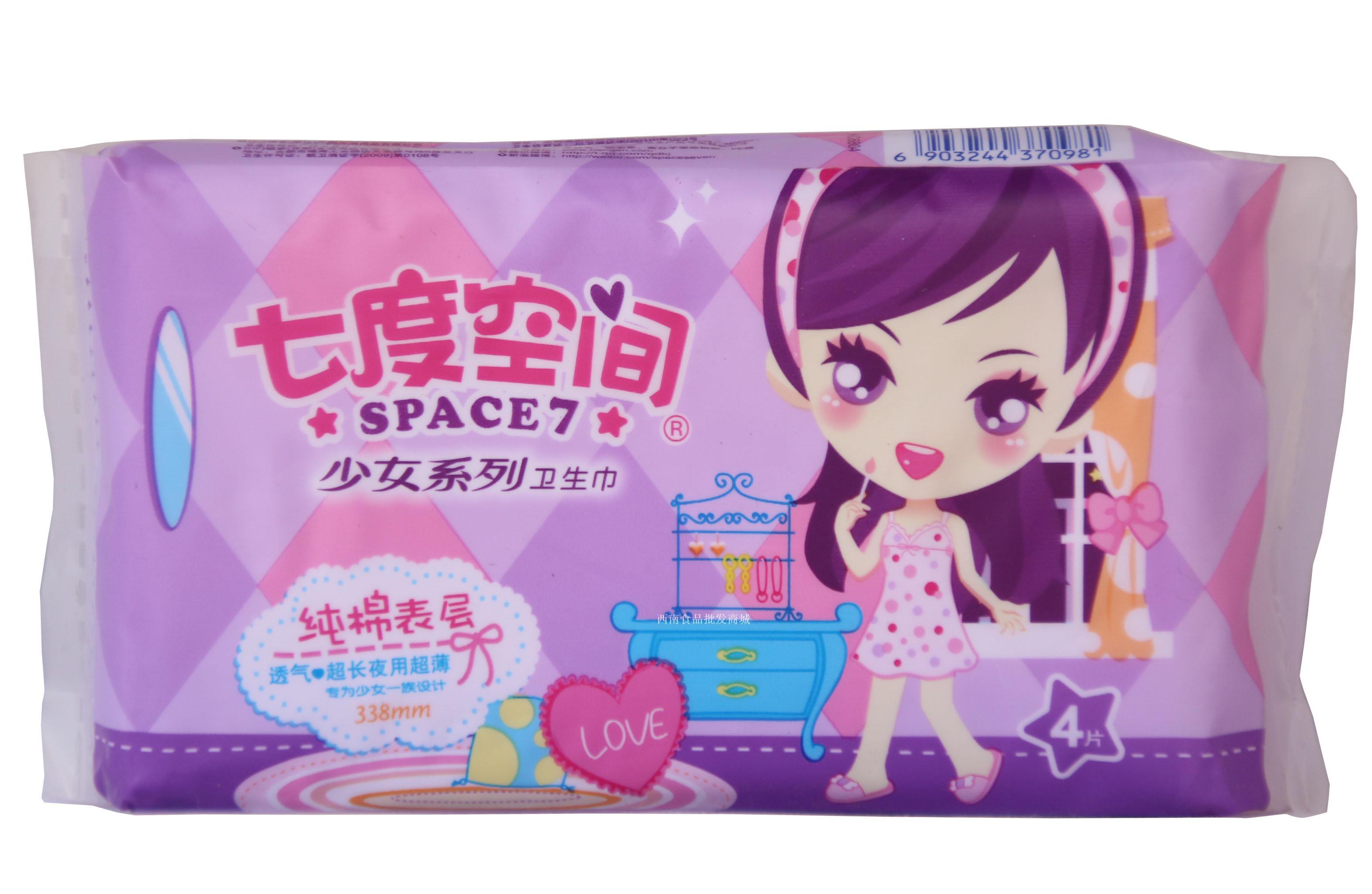 QSC6804七度空间少女系列纯棉表层4片装夜用卫生巾