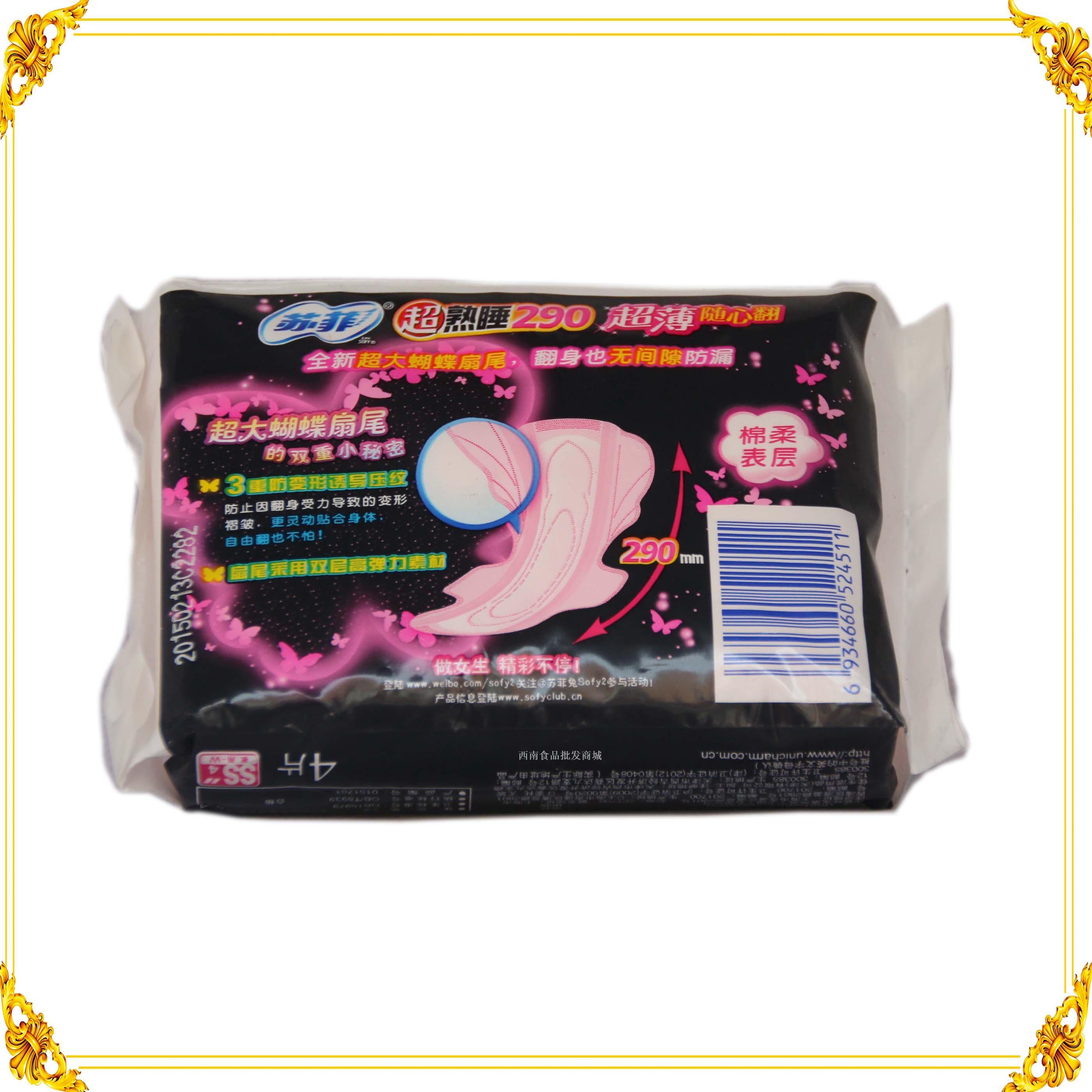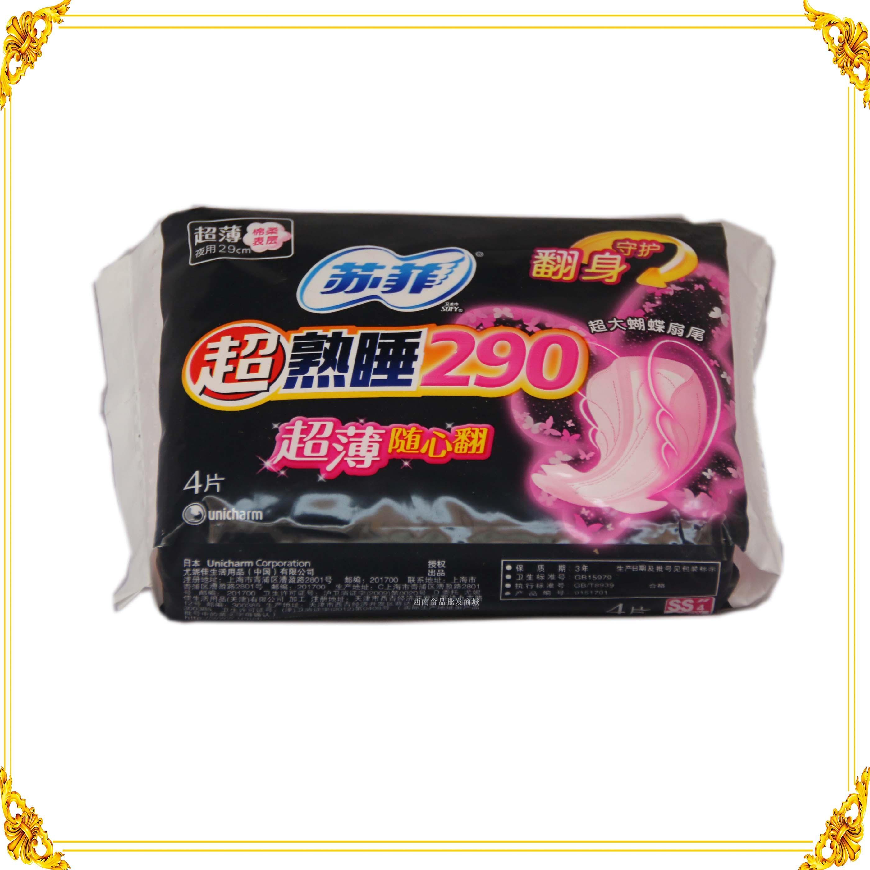 苏菲超熟睡290超薄随心翻棉柔表层4片装夜用卫生巾