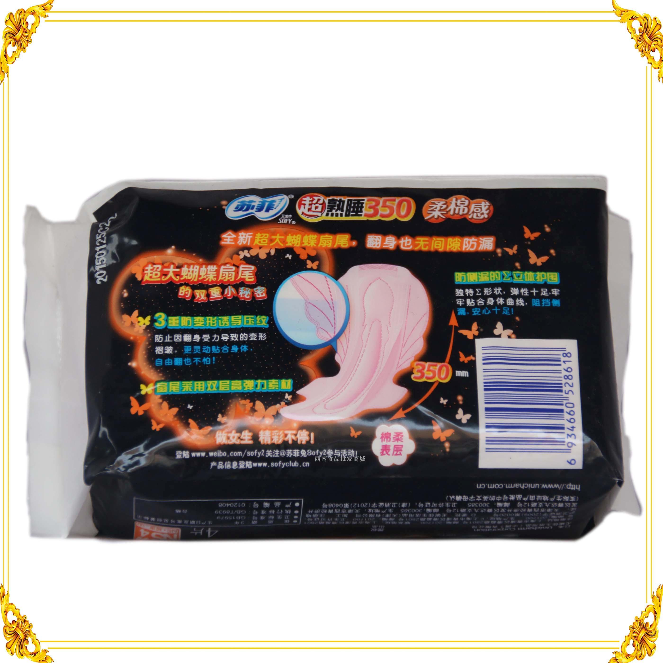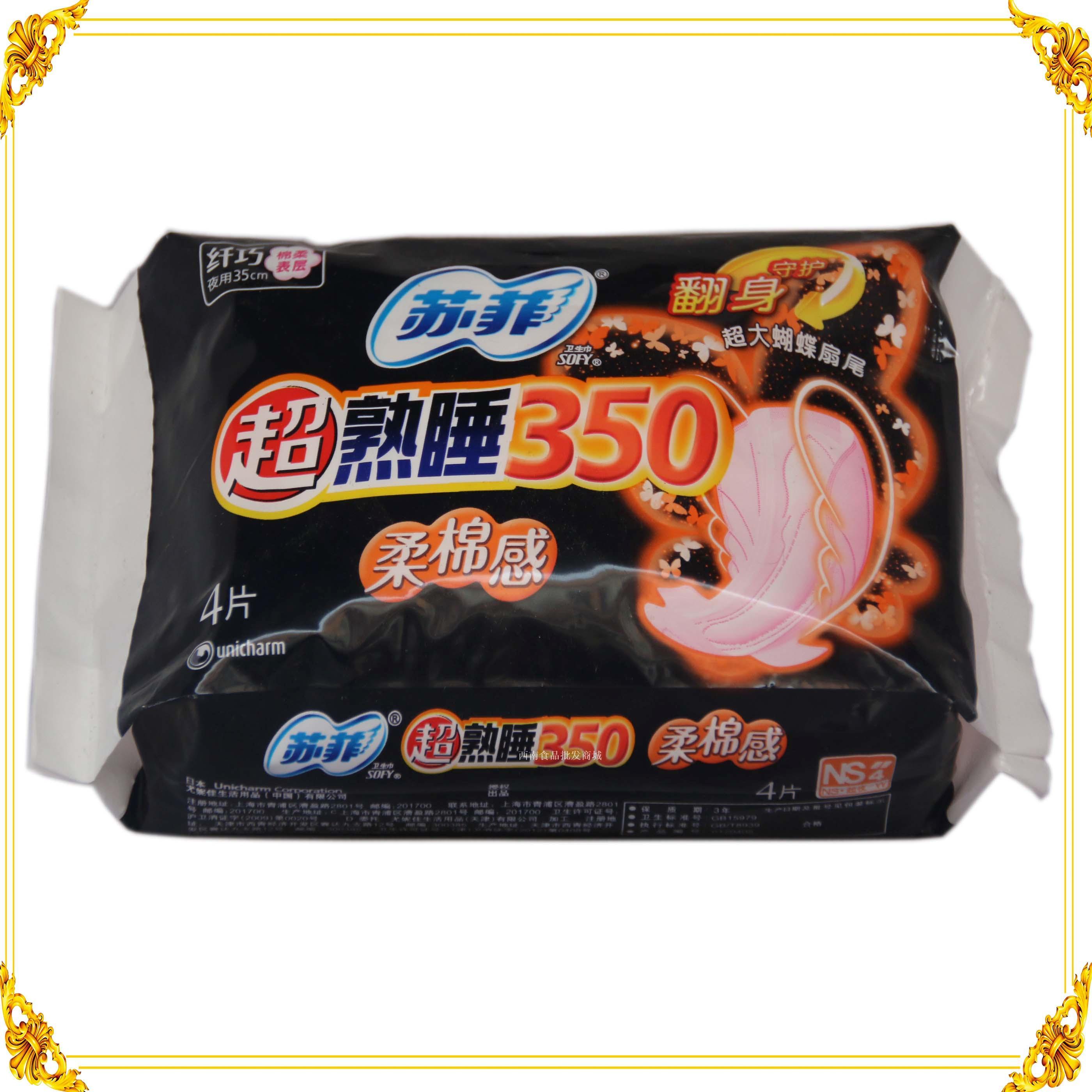 苏菲超熟睡350柔棉感棉柔表层4片装夜用卫生巾